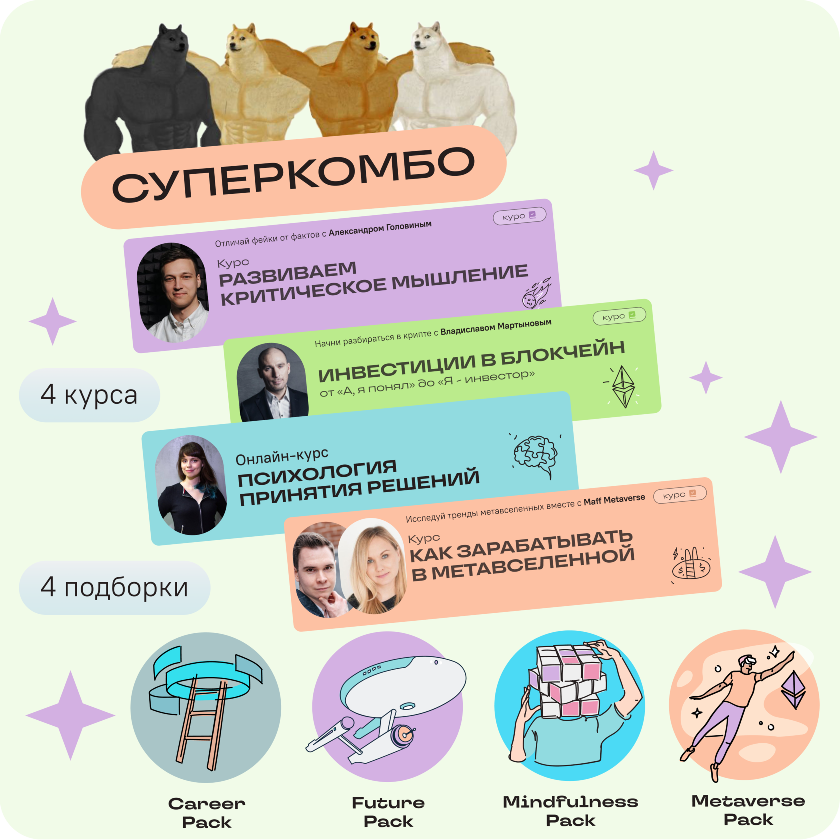 | Поздравляем с покупкой Суперкомбо! | Вам открыты: - Курс «Развиваем критическое мышление» от Александра Головина