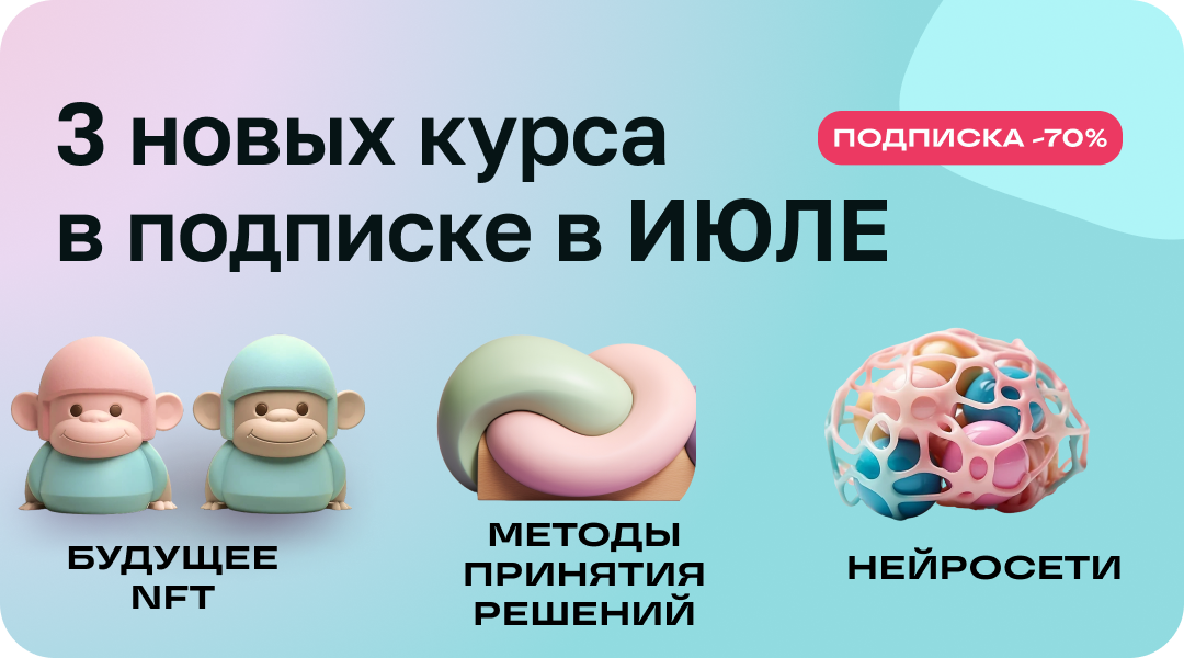 Получайте каждый месяц новые курсы, подборки и лекции по трендовым темам.