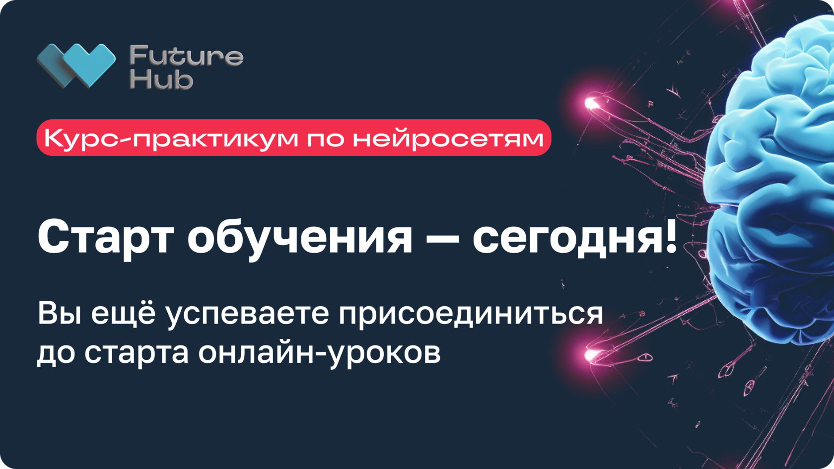 | Последний день, чтобы присоединиться | | | | Присоединяйтесь сегодня, чтобы обучиться нейросетям в «живом формате»! | | Первый онлайн-урок пройдёт 26 марта в 18:00 (мск), в формате вебинара.