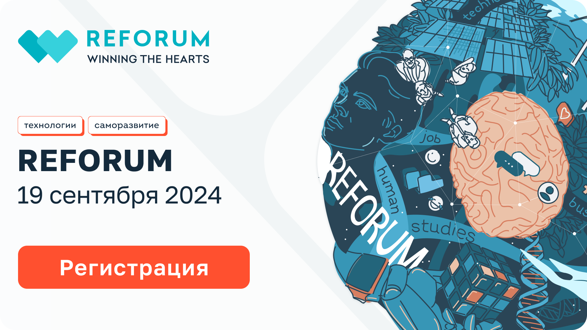 | Открываем регистрацию на «Reforum. Саморазвитие» | | | REFORUM «Технологии и Саморазвитие» посвящается изучению ключевых сторон личного и профессионального роста в эпоху 4-й промышленной революции.Мы исследуем, как современные технологии и тренды в области психологии и осознанности формируют новые подходы к саморазвитию и делают его неотделимой частью жизни в 2024 году. Зарегистрироваться на REFORUM можно на сайте. | | | | | | | Подарим три важные книги о навыках саморазвития будущего | | Зарегистрируйтесь бесплатно на форум и забирайте эти книги себе в подарок!