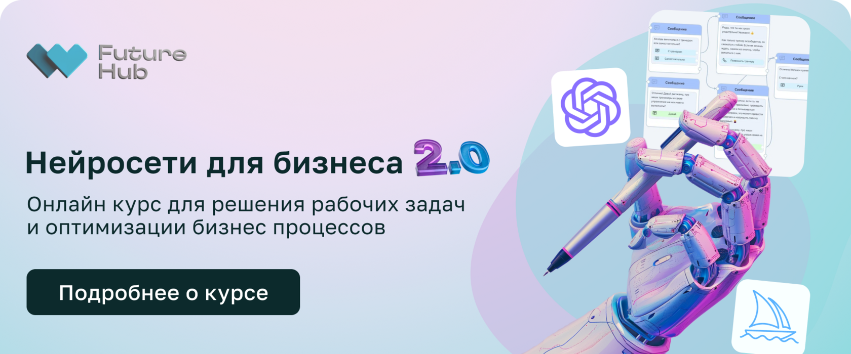 | Что будет: ✔️ базовый курс и профессиональные модули ✔️ 3 месяца практики ✔️ закрытое AI комьюнити для нетворкинга ✔️ кураторы курса, которые всегда придут на помощь ✔️ полный путь обучения от основ до профессионального уровня