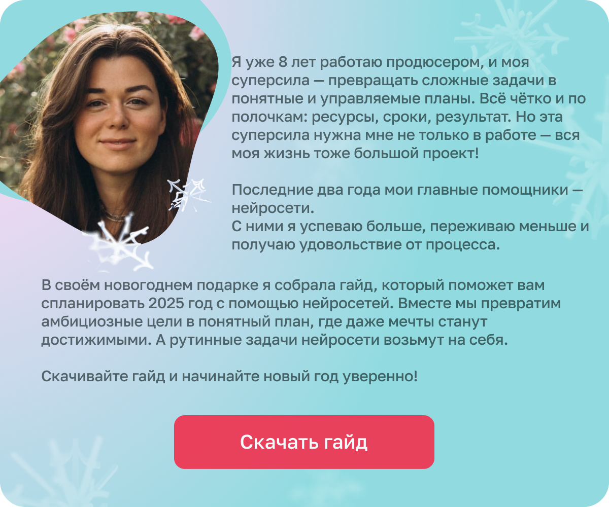 А если вы хотите научиться использовать нейросети не только для личных дел, но и для работы — у меня для вас подарок! 🎁 Вот персональный промокод NEWYEAR со скидкой 5000₽ на курс «Нейросети для бизнеса 2.0».