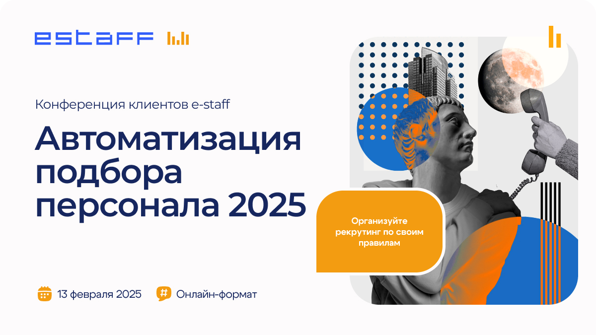 13 февраля 2025 года наши партнеры проводят ежегодную Конференцию e-staff 2025 — онлайн-событие для рекрутеров и HR-специалистов, где вы получите свежие идеи, ценные инсайты и практические инструменты для успешной работы в новых реалиях.
