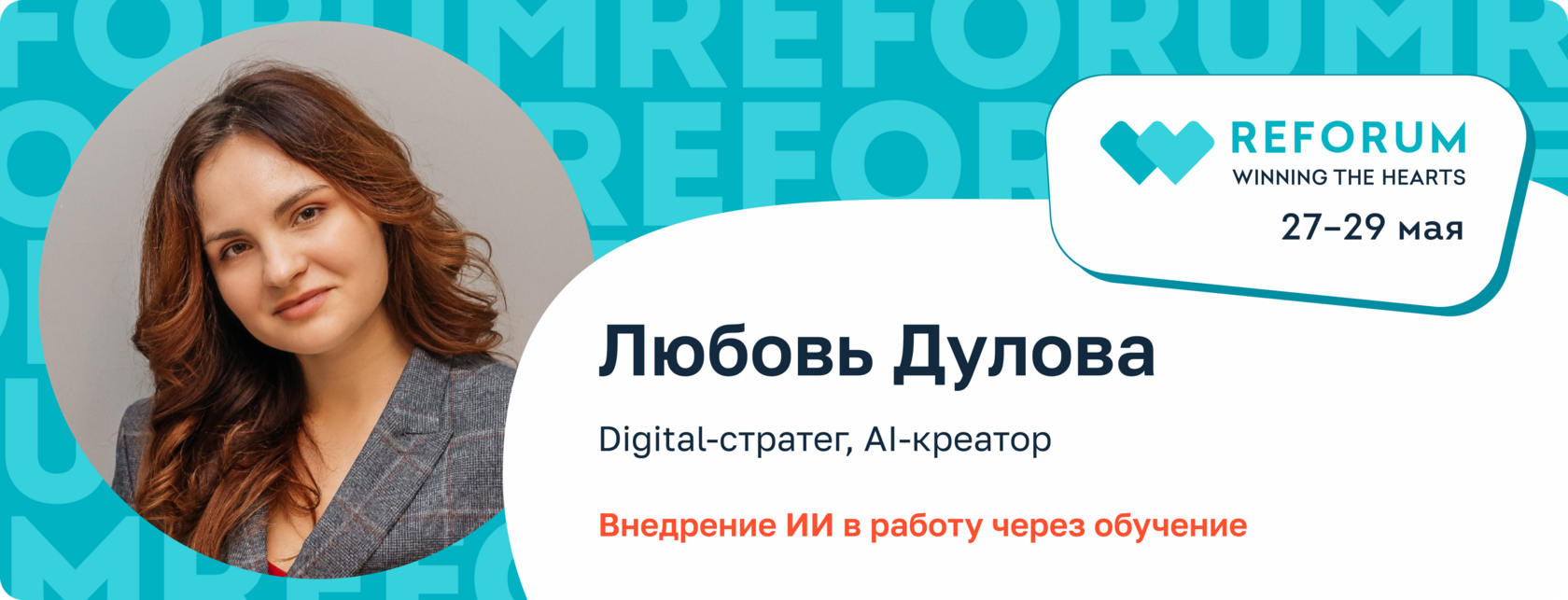 REFORUM.AI Любовь расскажет, как нейросети меняют подход к работе и бизнесу, а также, как внедрять ИИ системно и эффективно. На примерах реальных кейсов вы узнаете, как нейросети уже трансформируют HR и бизнес-процессы, и почему обучение ИИ становится драйвером роста для современных компаний.