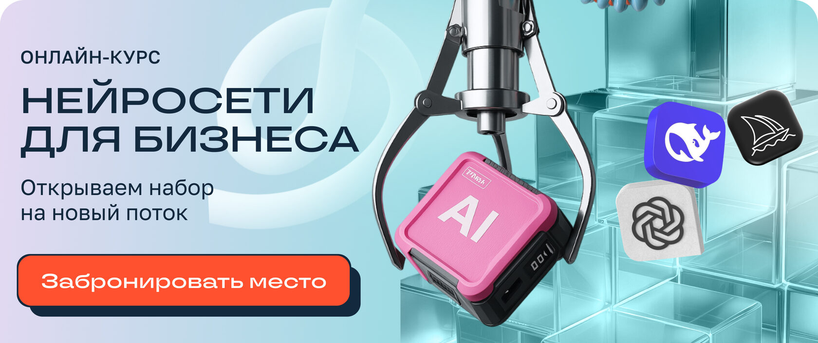 Мы открыли набор на новый поток курса «Нейросети для бизнеса» — по самым низким ценам, которые будут только до 14 июля. Дальше — дороже. ⠀ Почему стоит вписаться уже сейчас? ❗️ С 14 июля — первое повышение цен ⚡ В сентябре стартуем без промедлений 👉 Закрепите за собой место на курсе по самой низкой цене ⠀ Что получите: 🔥 базовые и профессиональные модули 🔥 3 месяца реальной практики 🔥 закрытое AI-комьюнити и кураторов, которые не просто проверят ДЗ, а выведут вас на новый уровень
