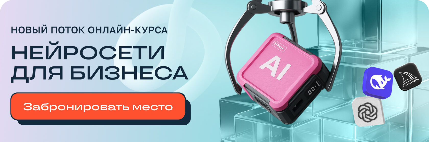 Что вас ждет на курсе: ✅ 2 уровня подготовки: базовые и профессиональные модули ✅ 3 месяца практики на кейсах — от маркетинга до HR и продаж ✅ закрытое AI-комьюнити и поддержка кураторов ✅ доступ к инструментам и шаблонам для внедрения нейросетей в бизнес