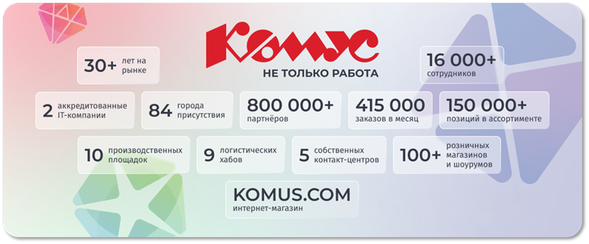 Пришло время познакомиться с настоящими лидерами! Пусть истории их успеха вдохновят вас двигаться вперёд! | | | Участник премии REFORUM Awards 2025 — Комус в номинации Бренд работодателя года с проектом «Комус: не только работа». Новое позиционирование HR-бренда | Проект «Комус: не только работа» — это комплексное обновление HR-бренда компании, направленное на раскрытие всего спектра её деятельности и создание ценностного предложения для сотрудников. В основе лежит разработка EVP и фирменного HR-стиля, интеграция ключевых сообщений работодателя, а также повышение вовлеченности и узнаваемости на платформах hh.ru, VK и Dream Job. Результаты проекта: - вход в топ-50 работодателей России;
