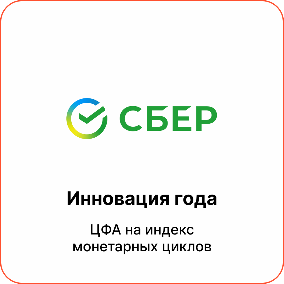 К 2024 году проект обучил свыше 2000 студентов и сотрудничает с 12 вузами и более 250 компаниями. Успешность программы подтверждается высоким уровнем доходчивости и трансформации знаний у учеников. | | | | Участник премии REFORUM Awards 2025 в номинации Инновация года Сбер с проектом «ЦФА на индекс монетарных циклов» | Сбер запустил продукт на основе искусственного интеллекта — ЦФА на динамический индекс монетарных циклов (SBERDMCI). Он анализирует пресс-релизы Банка России после каждого заседания по ключевой ставке, оценивая «жесткость» риторики регулятора и автоматически ребалансируя инвестиционный портфель. Это позволяет инвесторам эффективнее адаптироваться к денежно-кредитной политике и инвестировать в российский долговой рынок с учётом актуальной аналитики. | | | | |