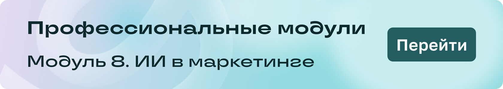 Срок сдачи: 2 сентября | | | | | | 28 АВГУСТА | ИИ в маркетингеФормат: записьСпикеры: Дмитрий Еременко, сооснователь DUAL Agency, To Dual Education, академический руководитель совместной программы Яндекса и НИУ ВШЭ «ИИ в маркетинге и управлении продуктом» В этом уроке:- что нужно знать каждому про ИИ
