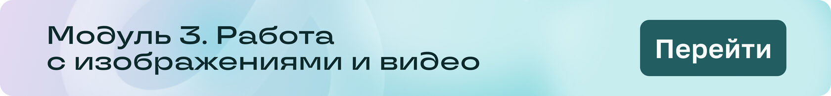 Срок сдачи: 17 июля | | | | | | 15 ИЮЛЯ | Работа с изображениями и видео. ТеорияФормат: записьСпикеры:- Анастасия Плутенко, AI креатор и маркетолог, эксперт по работе с графическими нейросетями